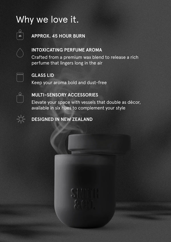 An untamed woody aroma wrapped in decadent sweet spices to create an indulgent sanctuary.