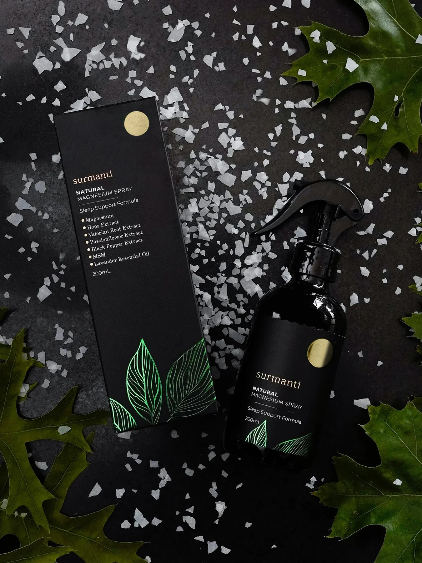 Our Magnesium Sleep Spray is the perfect answer to the sleepless nights caused by high cortisol levels and stress. With just a few sprays, you can reduce tension, calm your mind, and prepare your body for the deep, restful sleep it deserves.