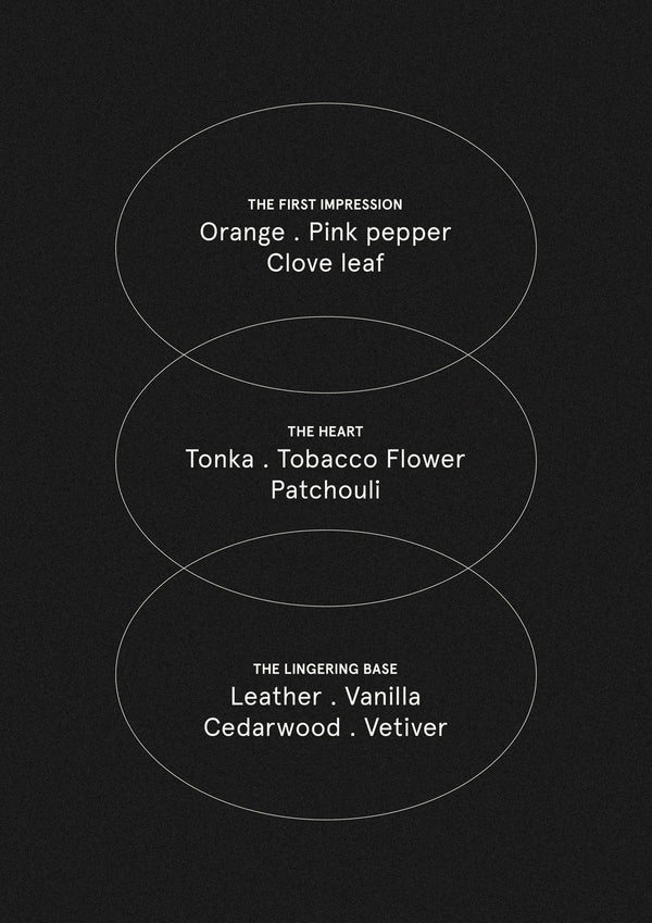 Journey to a decadent sanctuary and envelop your senses with intense and distinguished accents of Tabac & Cedar Wood. An artisanal, signature scent, composed of spiced orange, black suede and tanned leather layered on a heart of tobacco flower and resinous tonka. Laden with deep animalistic textures and enhanced by a harmonic base of warm cedar wood and indulgent liquid vanilla.