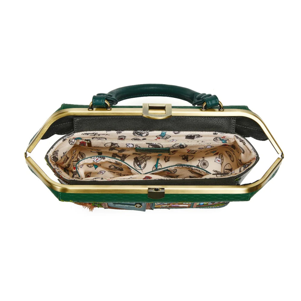 Shaped like a witch’s house, this vegan leather shopfront handbag boasts a magical design, with leafy roof windows, a charming pantry scene, and a mysterious door you may have opened once before. Dare to open it again?